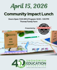 Ticket registration is now open for the Snohomish Education Foundation Community Impact Lunch at Thomas Family Farm on April 15, 2026.
