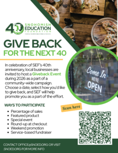 SEF is bringing the community together with a shared opportunity to GIVE BACK for the students who make Snohomish strong.